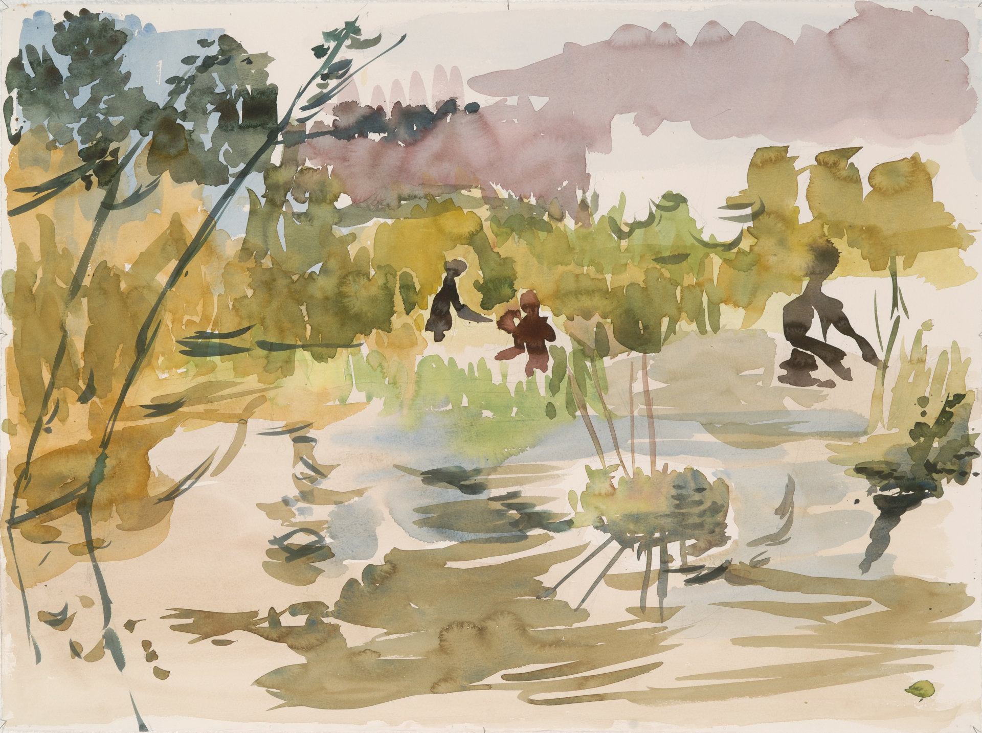 Kalastusta, 2008, vesivärimaalaus, 56 x 76 cm