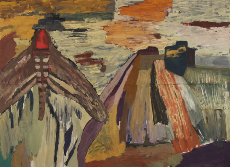 Kiitäjä vesiputouksella, 2000, öljyvärimaalaus, 190 x 265 cm