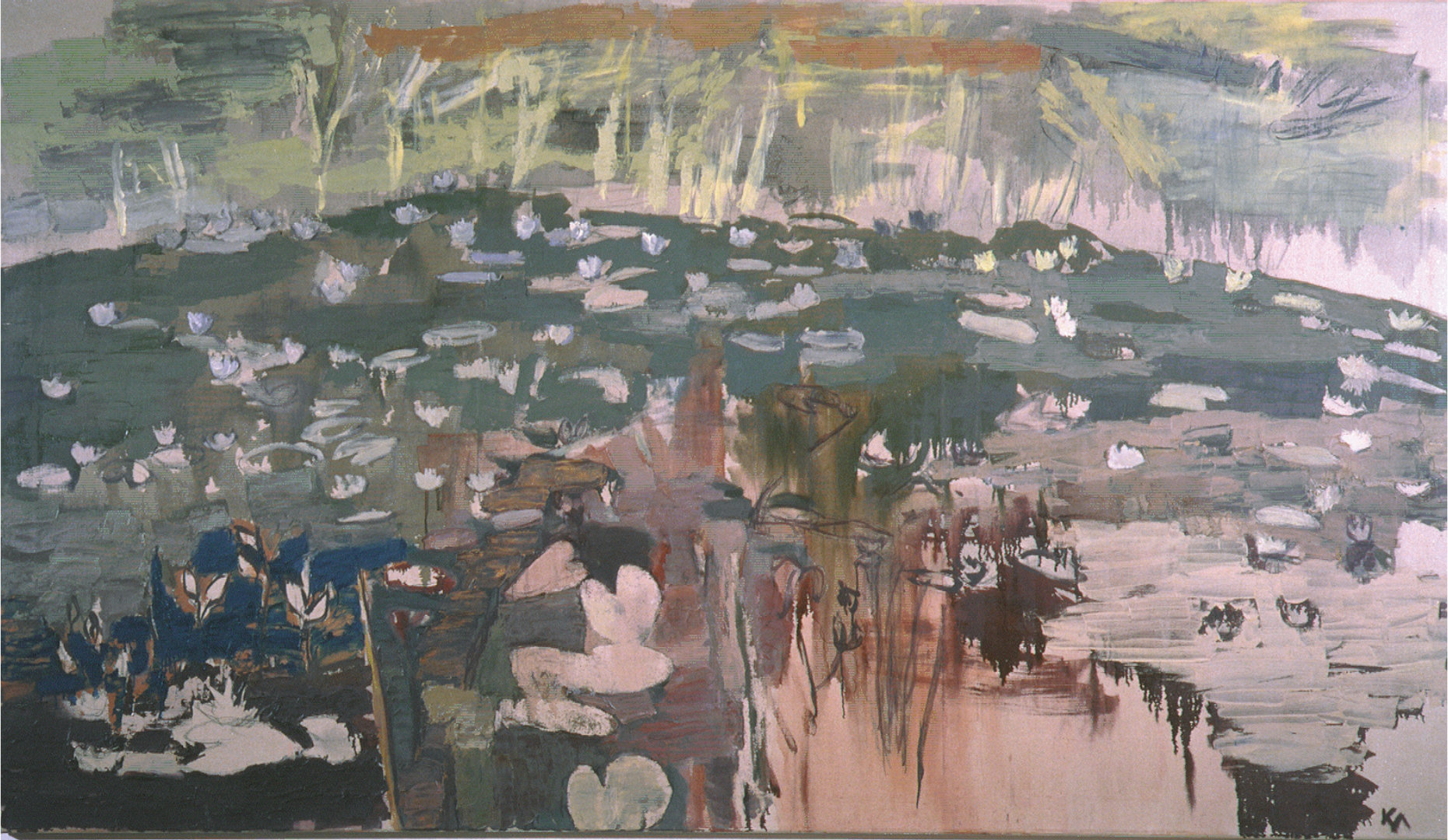 Lumpeita, 2002, öljyvärimaalaus, 170 x 230 cmJenny ja Antti Wihurin rahasto Lumpeet uivat, 1996, öljyvärimaalaus, 136 x 236 cmAineen kuvataidesäätiö Lummelammella, 1996, öljyvärimaalaus, 136 x 236 cm Lummelampi, 1996, öljyvärimaalaus, 136 x 236 cm Tumma lampi, 1996, öljyvärimaalaus, 128 x 137 cm Maariankämmekkä, 1996, öljyvärimaalaus EdellinenSeuraavat